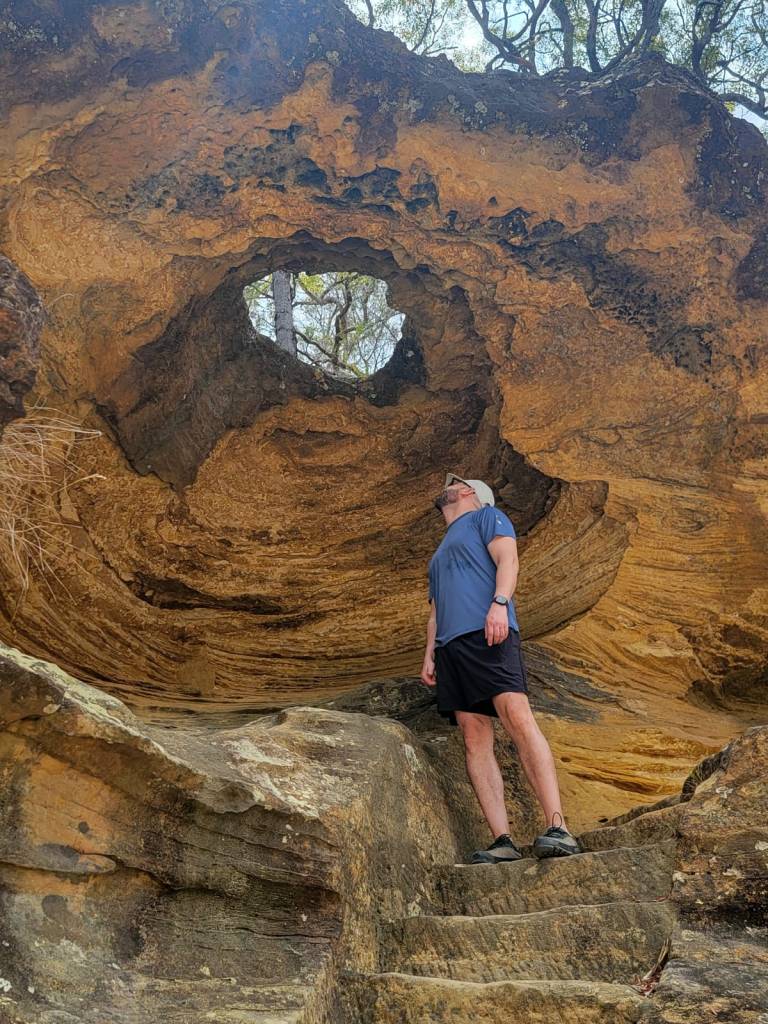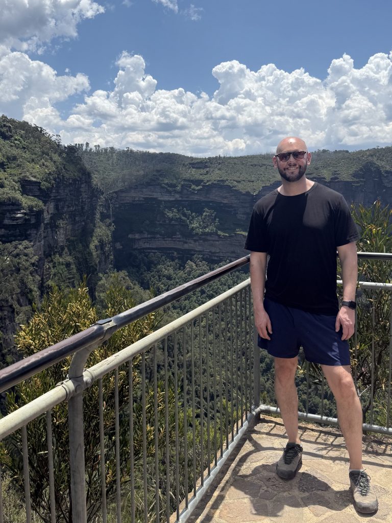 Just me and Paul today. The rest of the crew was driving to Sydney to see Hamilton. Paul wasn’t interested in the show and I’ve already seen it 4 times so he set up the day as a redemption for our failures a couple days earlier. We started the morning with a coffee and I finally got a proper meat pie. We ordered one beef and one lamb and split them (pictured below). They were delicious. After the pies, he took me to the three sisters again. This time the fog stayed away and we were able to get some great views of the blue mountains. After the lookouts we went on a couple of hikes and I put Paul to work taking pictures of me with the beautiful mountains in the background. He was a good sport about it as always. I offered to take pictures of him but he wasn’t interested since he lives an hour away.
