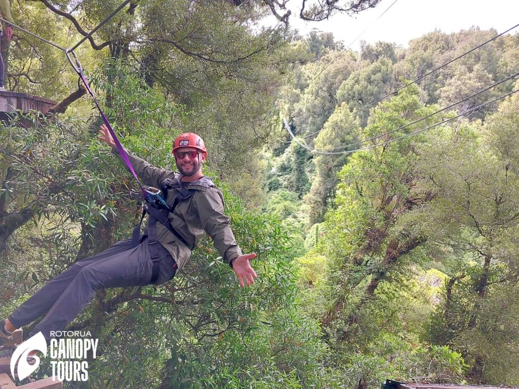 After the canyon walk, we were tight on time for the next experience. We didn’t have time to eat or do anything but drop a few things in the hotel room. Paul hadn’t eaten all day and I had a banana for breakfast. But we made it to our zip lining experience. https://www.canopytours.co.nz