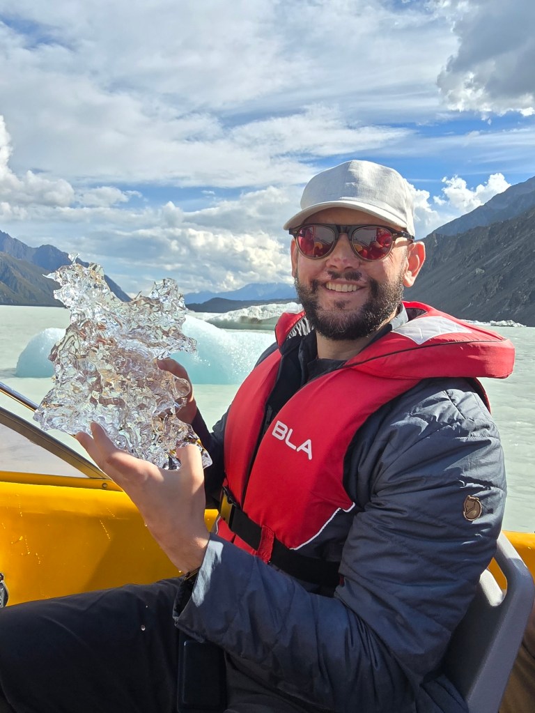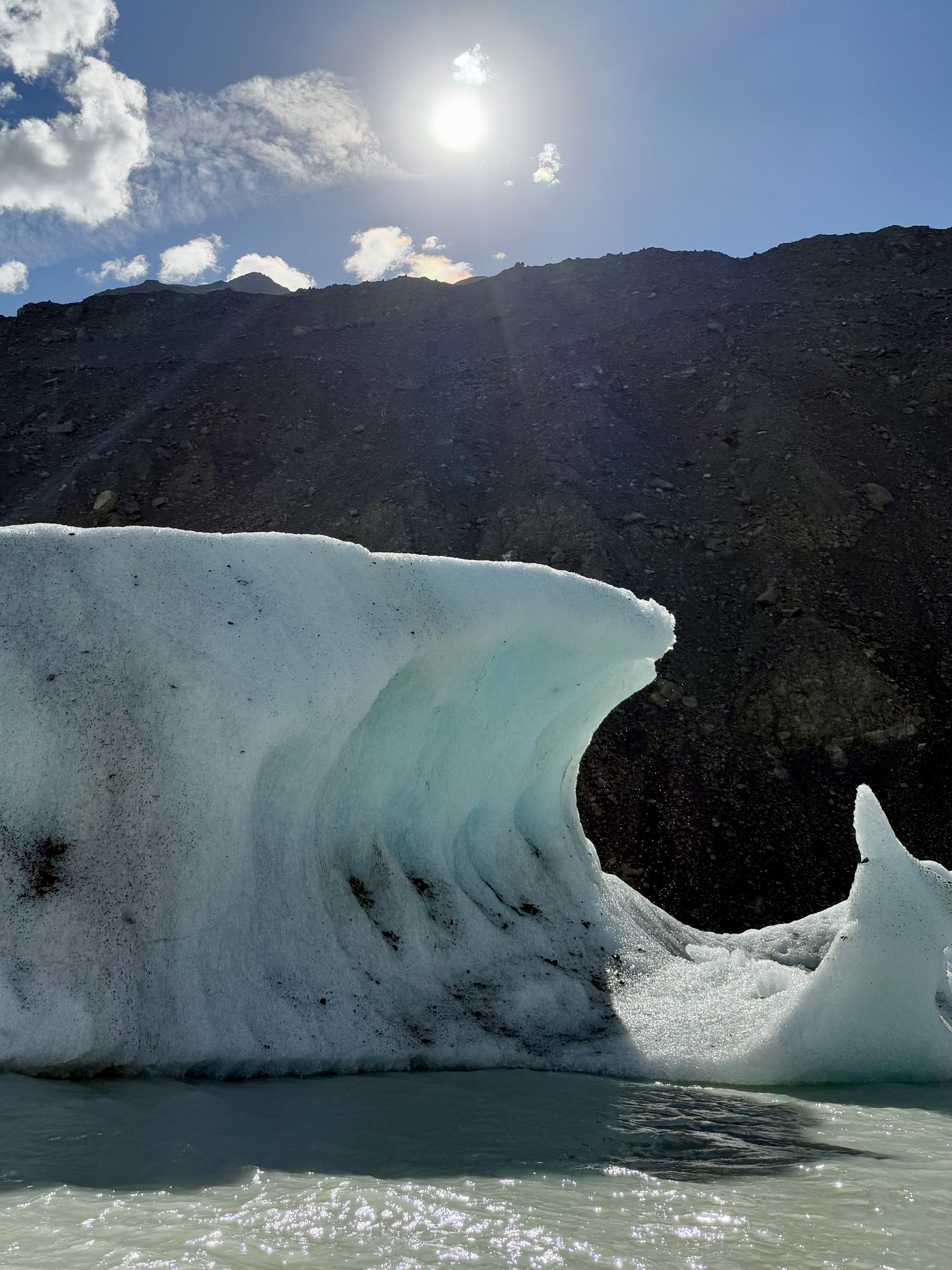 As you can see from the photos, it was a beautiful experience. We couldn’t get too close to the glacier (glassier) because there’s a lot of ice hidden just underneath the surface. But it was still cool to boat around in the lake formed by the glacier (glassier) runoff and pick up chunks of the glacier (glassier) that had broken off.