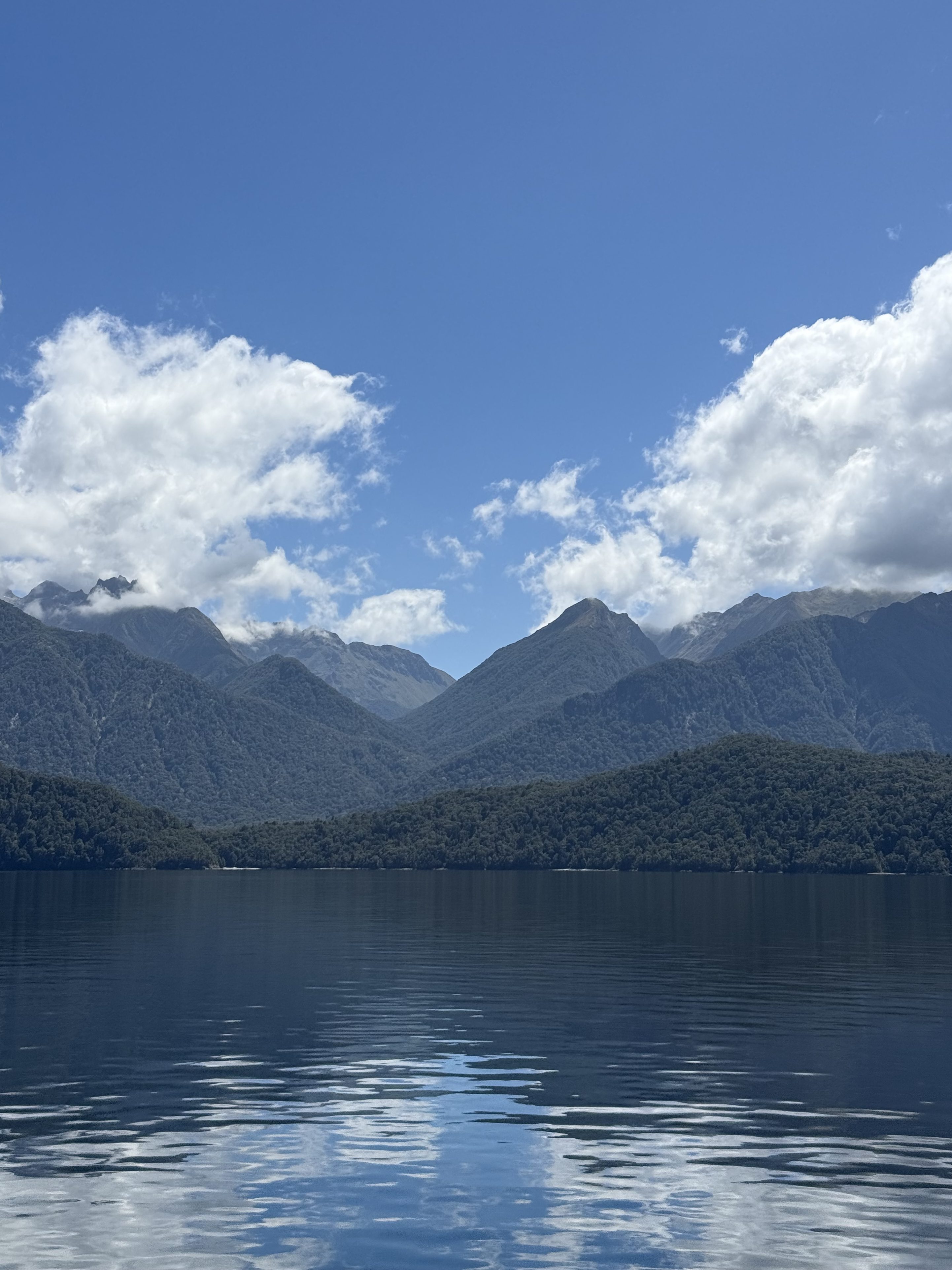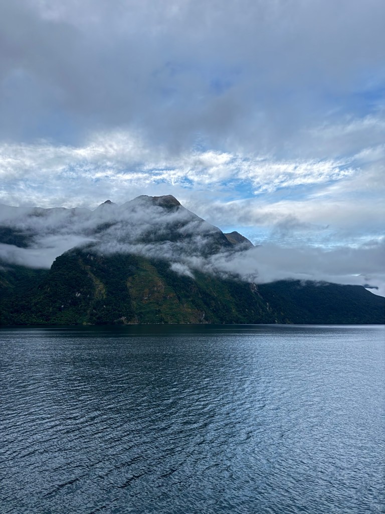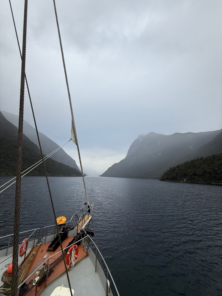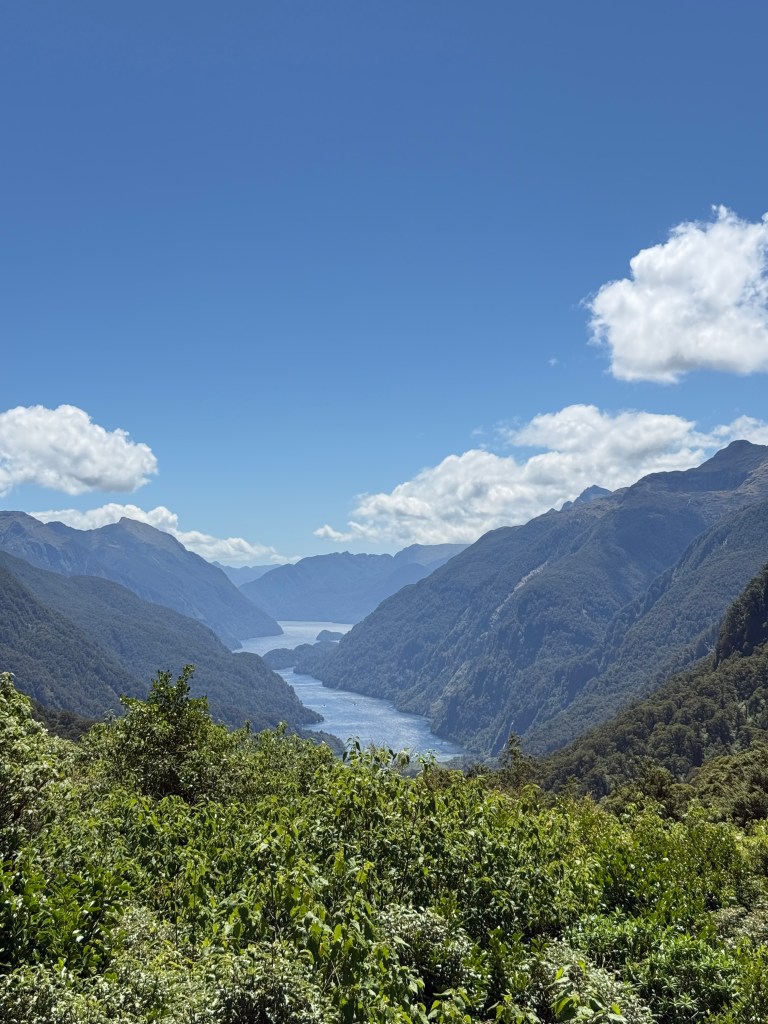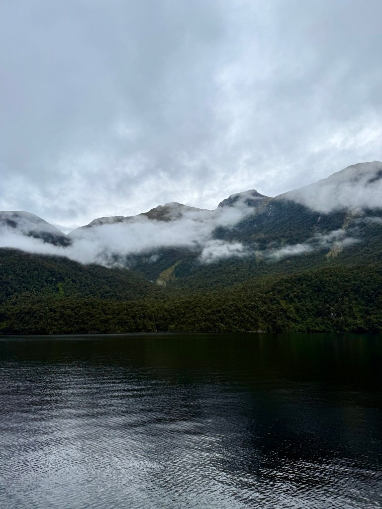 Once we got to the lookout I offered to take their picture and we started chatting a little more and sharing a few stories about our travels so far. They were visiting NZ for a month after coming from Melbourne where they celebrated NYE with some friends who live there. They referenced that their son was playing in the region which inspired the trip. I told them about my travels so far and when there was a dip in the conversation, I asked them about their son. Turns out he plays drums in a band called “Joe” which I was unfamiliar with. Mom had been doing the majority of talking to this point but dad was invested in this topic. He told me I had probably heard their song. It mentions Chicago and went viral on TikTok or whatever. He attempted to hum the song a bit but I was still a bit lost and then he sang “And when I’m back in Chicago… I feel it” and it clicked. The band was Djo and the song was End of the Beginning. I knew it very well. That was about the time the bus driver told us it was time to go. I was reluctant to talk to them but now as our conversation was ending, I was sad we didn’t have more time to chat. They were heading to the more famous Milford Sound and we were headed to Doubtful Sound.