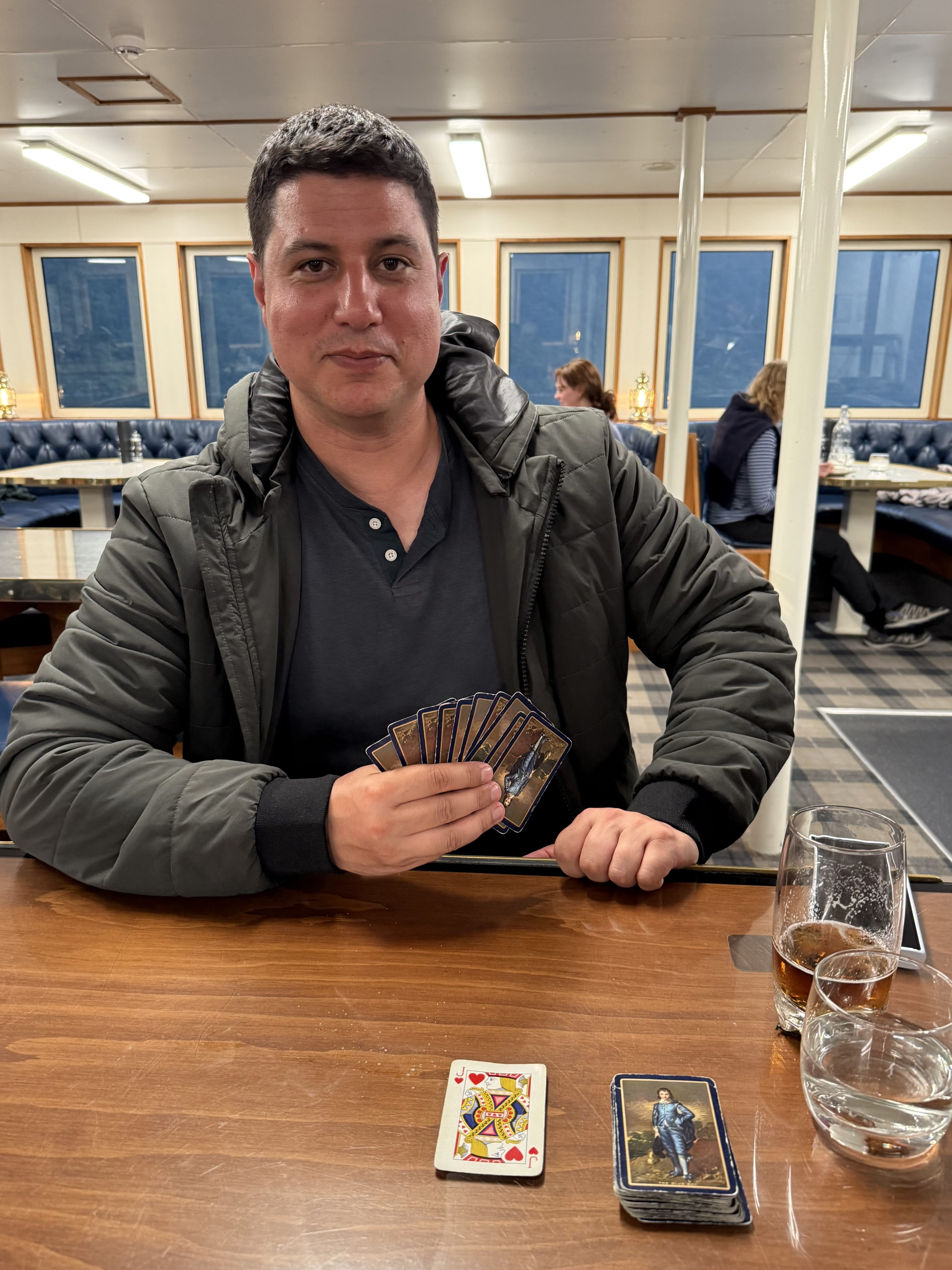 We were both tired by the time we boarded so we played it low key. There was a kayak experience offered but we had a pretty cool kayaking experience the day before and we didn’t want to fight the sand flies again. It was pretty foggy on the fjord so we opted to just stay inside and play some cards (gin) and have a few drinks (beer).