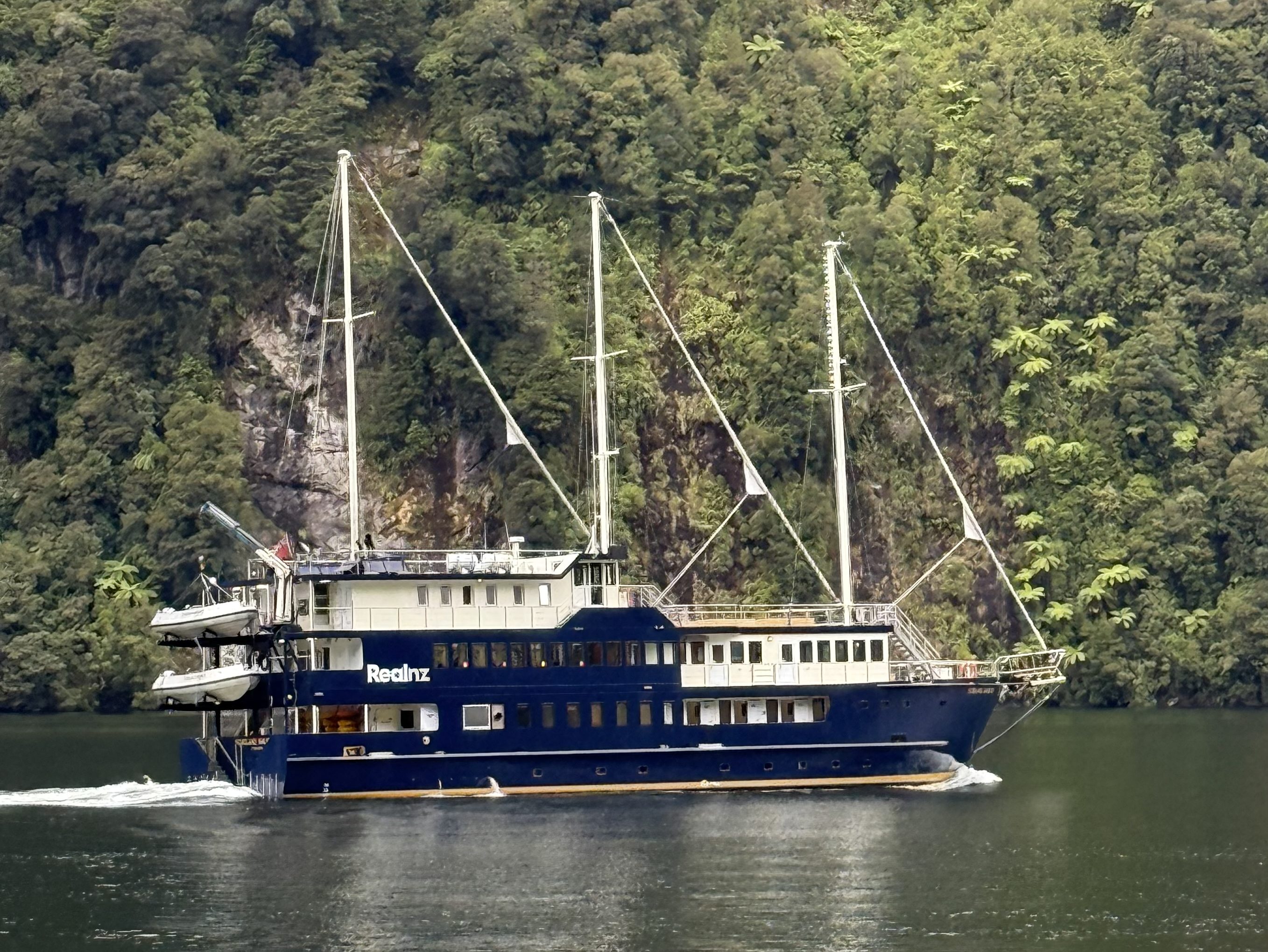 Today’s adventure was a trek to Doubtful Sound. We took a bus (below) to a boat (below) to a bus (not pictured) to a boat (stay tuned) that would take us to Doubtful Sound.