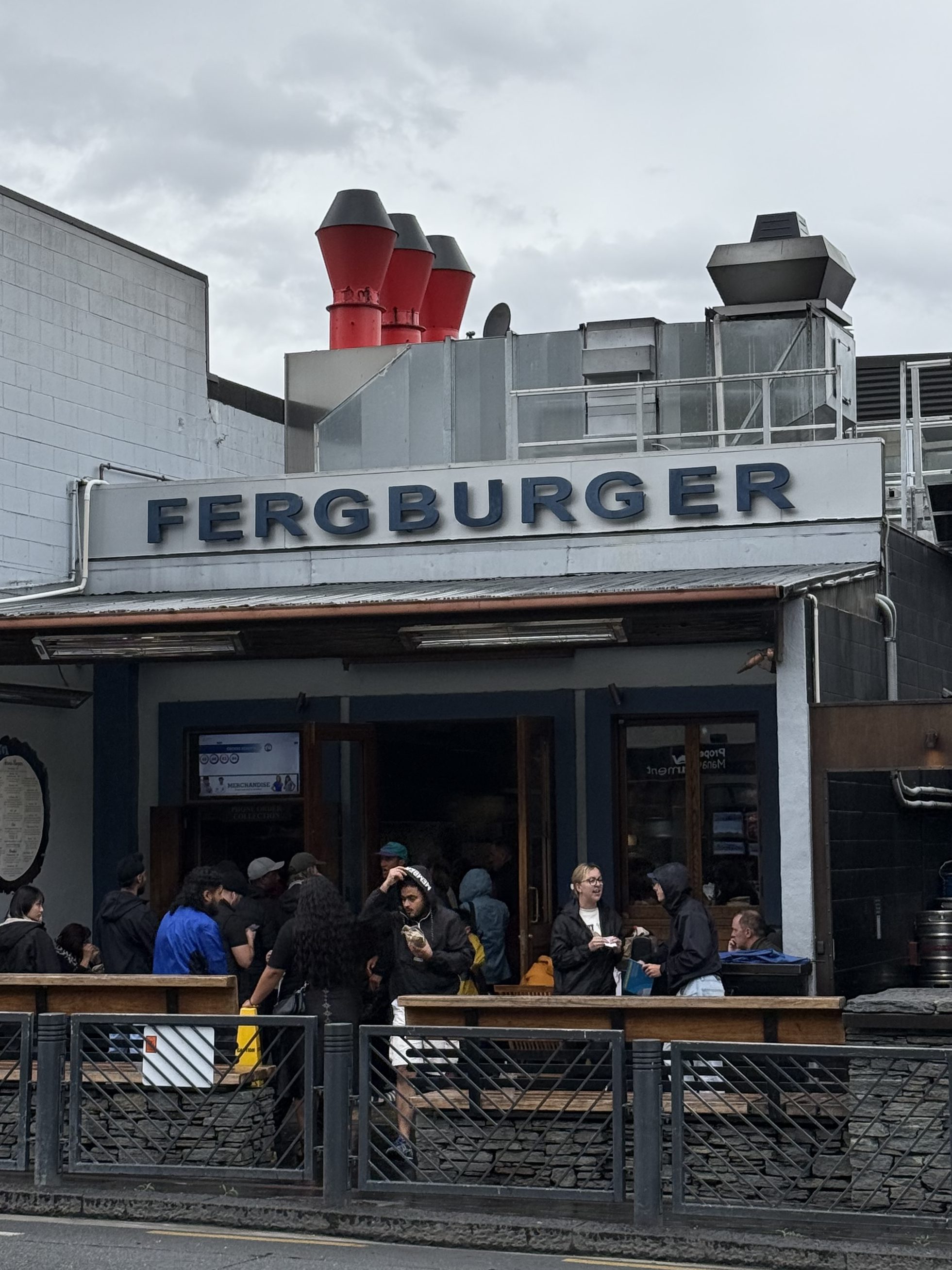 Once we got back to Queenstown, we checked into our hotel and it was time to grab a bite to eat. A friend told me about a delicious burger she enjoyed in Queenstown at Fergburger. Apparently, word has gotten around that it’s the place to be. It was a pretty long line, which I usually take as a positive indicator. The line moved quickly and it only took about 15 minutes to get through it.